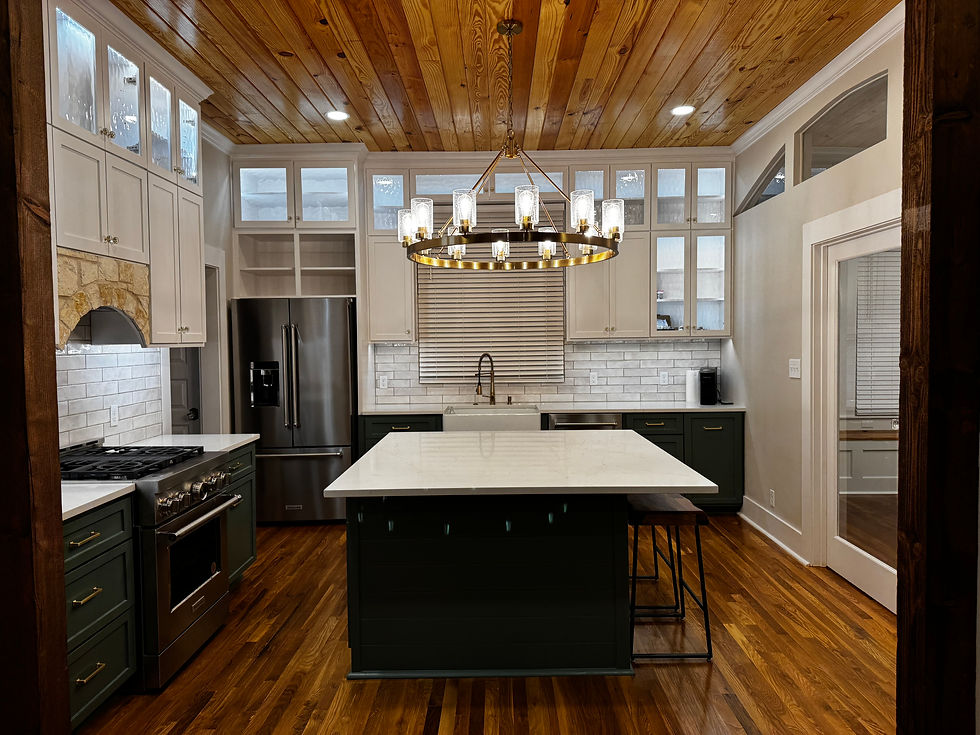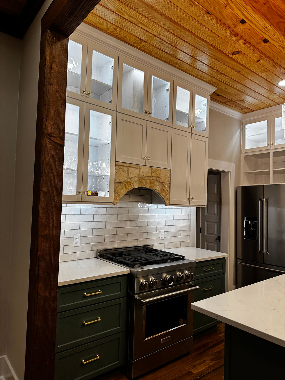 From the custom green cabinetry and white quartz countertops to the warm wood ceilings and original shiplap walls—we tied the old and new together in a way that feels intentional. Every room got attention, and the result is something we’re proud of.